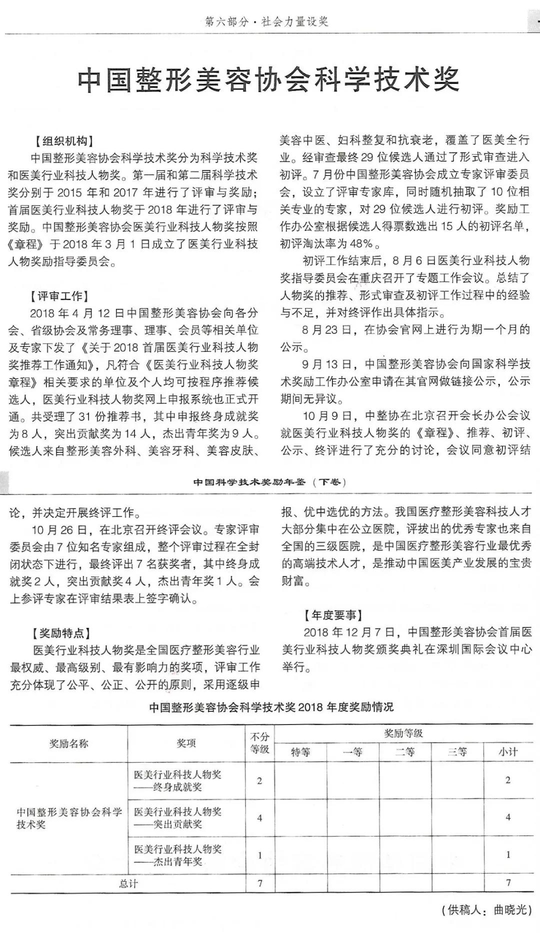 “中國整形美容協(xié)會科學(xué)技術(shù)獎”進(jìn)入了國家獎勵序列
