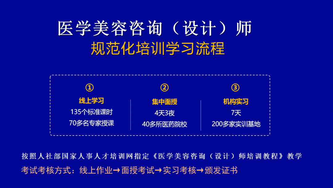 據(jù)田亞華教授介紹,參加全國(guó)醫(yī)學(xué)美容咨詢(xún)(設(shè)計(jì))職業(yè)技能規(guī)范化培訓(xùn)項(xiàng)目的學(xué)員,通過(guò)線(xiàn)上學(xué)習(xí)、集中面授、機(jī)構(gòu)實(shí)習(xí)等規(guī)范化培訓(xùn)學(xué)習(xí)流程,考核合格者將獲得“專(zhuān)業(yè)(職業(yè))技能培訓(xùn)合格證書(shū)”與“醫(yī)學(xué)美容咨詢(xún)(設(shè)計(jì))師規(guī)范化培訓(xùn)合格證書(shū)”,該證書(shū)將作為學(xué)員參加國(guó)家專(zhuān)業(yè)(職業(yè))技能規(guī)范化培訓(xùn)的合格證明,也是醫(yī)學(xué)美容咨詢(xún)(設(shè)計(jì))師職業(yè)技能等級(jí)認(rèn)定的依據(jù)。
