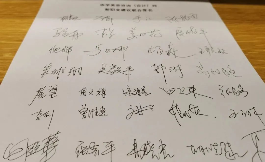 30多位專家現(xiàn)場(chǎng)簽名,建議促進(jìn)醫(yī)美咨詢(設(shè)計(jì))師新職業(yè)建設(shè)。